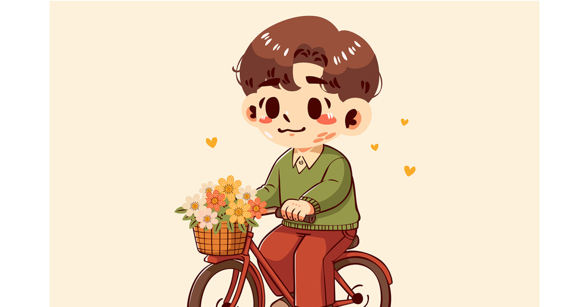 File Included : AI (CS6)EPS10Image 4000 x 3000 (px) **Discover a cheerful cartoon boy riding a bicycle on a spring day, surrounded by blossoms. Perfect illustration for kids and seasonal fun!** **The illustration is a cartoon of a boy riding a bicycle on a spring day. The bicycle is adorned with baskets filled with colorful…