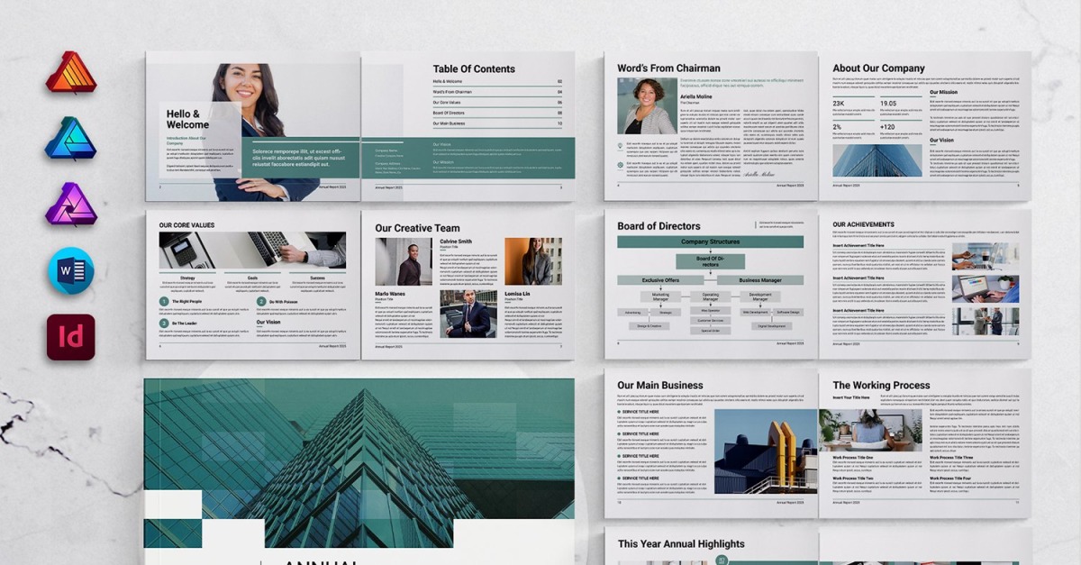 Annual Report Landscape for MS Word, InDesign, Affinity Suites