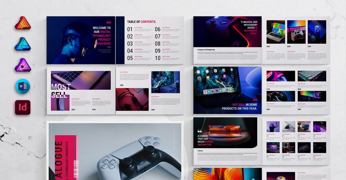 Gadget Product Catalog Template Landscape for MS Word, InDesign and Affinity Suites