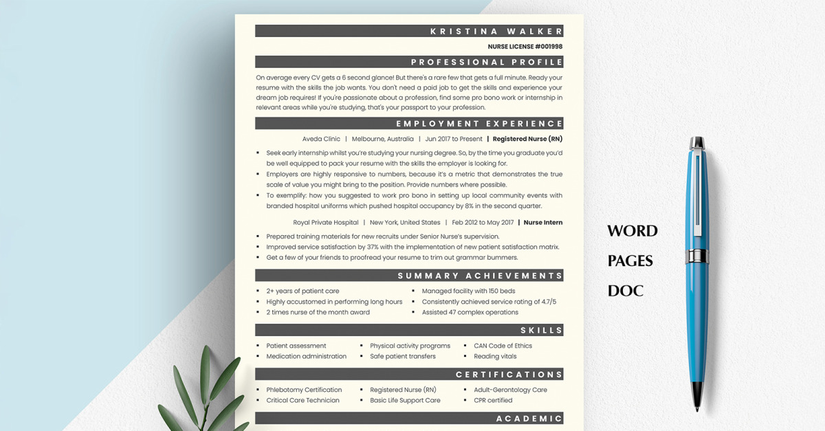 Registered Nurse Resume | Resume Template for Nurses | Nursing Resume Google Docs | RN CV | Resume