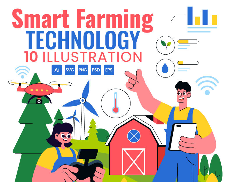 Smart Farming Technology Vector Illustration featuring a Farmer Managing His Industrial Farm Using a Tablet to Control Farming in a Flat Background Suitable for Poster, Web Banner, Brochure, Landing Page and Others Background Template Features: – Fully editable vector files, easy to edit the object, color and background – Include 100% vector Ai, Eps 10,…