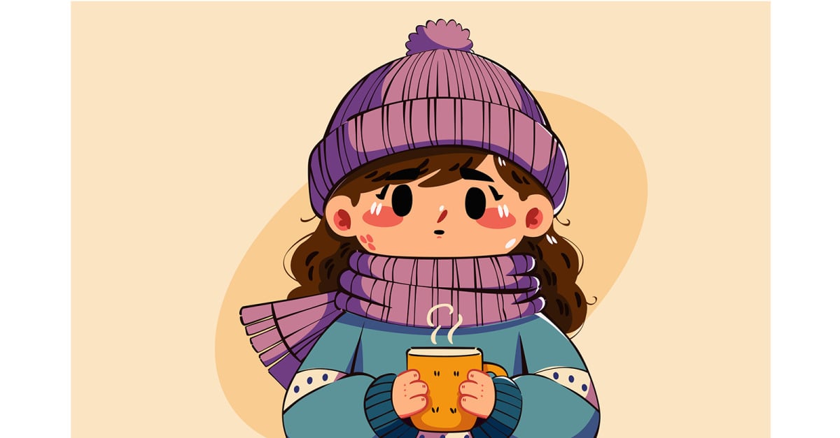 File Included : AI (CS6)EPS10Image 4000 x 3000 (px) **Stay warm and cozy this winter with a charming illustration of a girl in winter apparel, holding a cup of tea. Perfect for adding some seasonal cheer to your designs** **Cute winter-themed illustration of a girl with a hat, scarf, and sweater, suitable for children’s content…