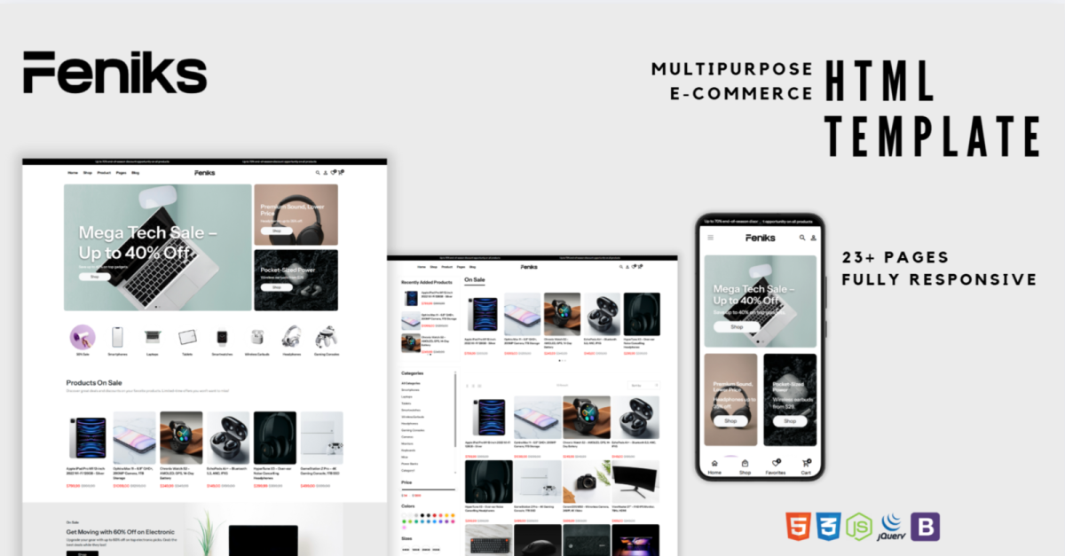 Welcome to Feniks Feniks is a powerful, modern, and flexible HTML5 e-commerce template crafted for ambitious online stores and digital businesses. Whether you’re launching a niche shop or scaling a large marketplace, Feniks provides all the design blocks and components you need to build a high-converting e-commerce site. With a fully responsive layout, reusable UI elements, and beautiful product…