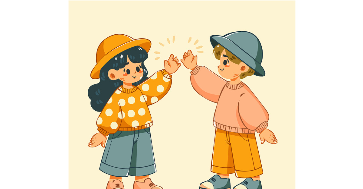 File Included : AI (CS6)EPS10Image 5000 x 5000 (px) **Experience the joy and camaraderie of a high five with this delightful cartoon boy and girl illustration. Perfect for adding a touch of fun and spirit to your projects** **The illustration features a cartoon of a boy and girl happily giving each other a high five.…